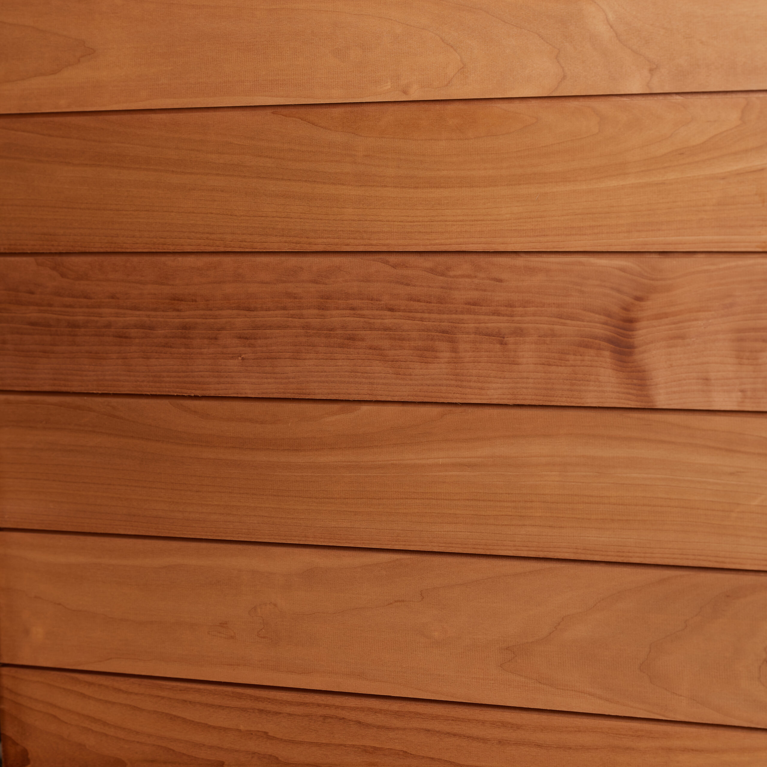 A moderate causal pattern. No resin as deciduous wood. Its warm shade makes it ideal as a panel for saunas and washrooms. Heat-treated wood has very low moisture absorption and warping. The panel can be concealed.