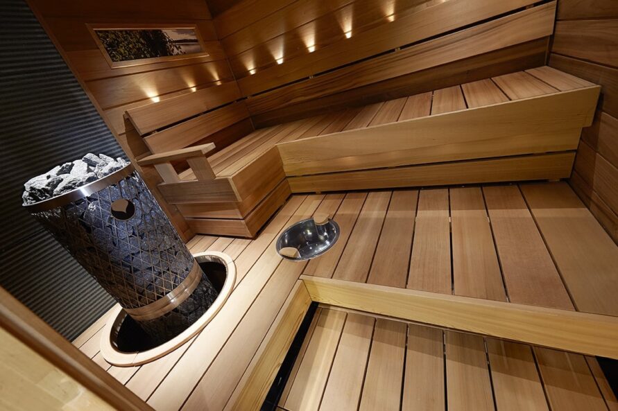 Sun Saunan tilaohjelmassa sauna, pesuhuone ja pukeutumistila vilvoittelumahdollisuuksineen muodostavat toiminnallisuudeltaan ihanteellisen kokonaisuuden, jossa yhdistyvät entisaikojen saunaperinteet, moderni ulkonäkö ja laadukas toteutus.